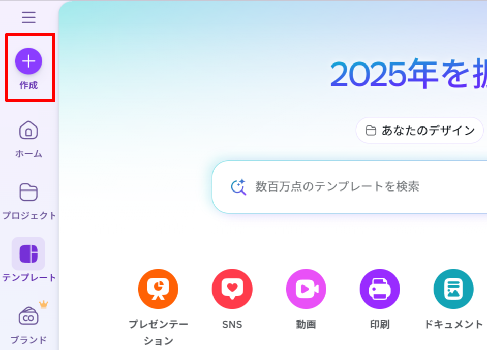 1. 左側メニューの 「作成」 をクリック