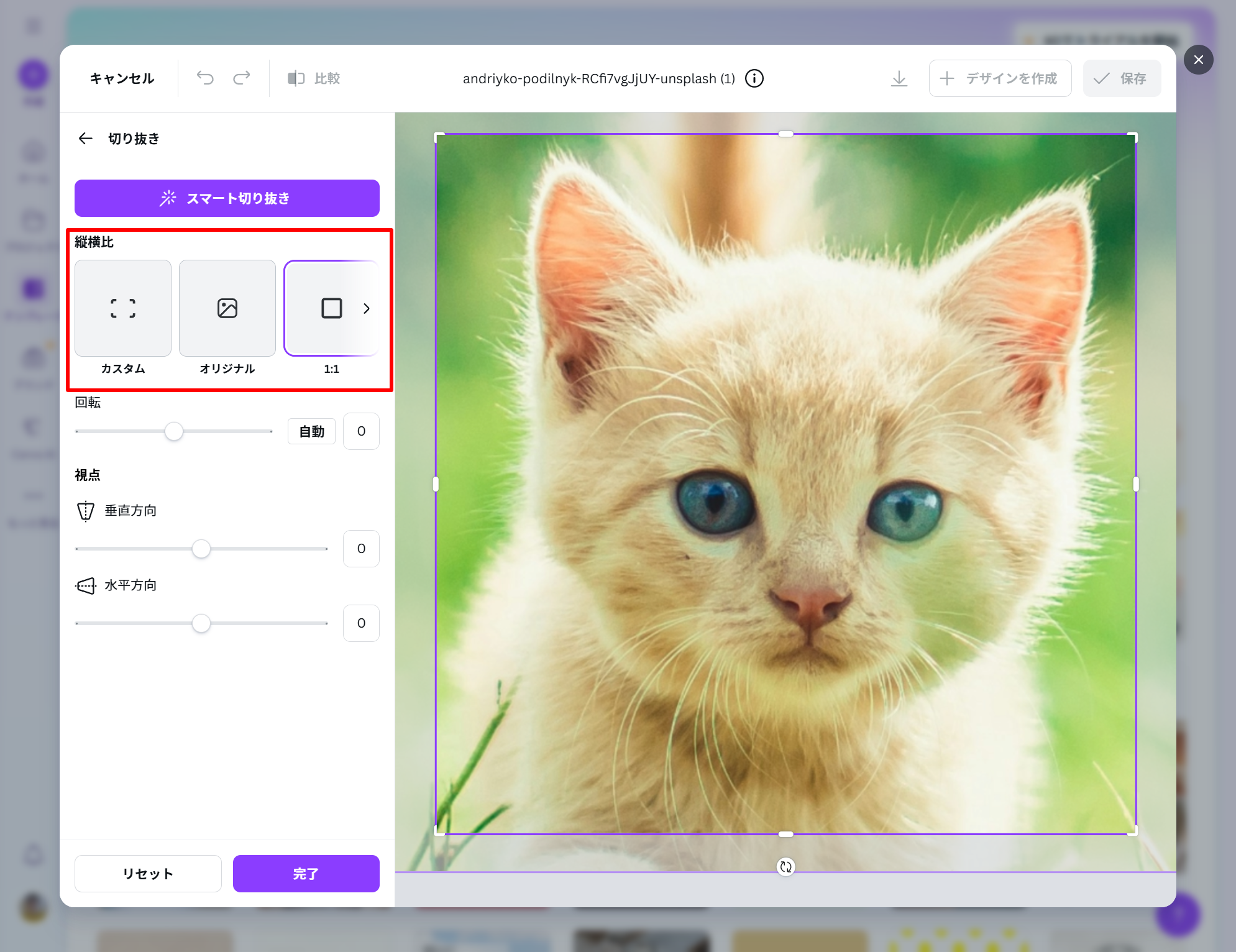 1.「切り抜き」をクリック