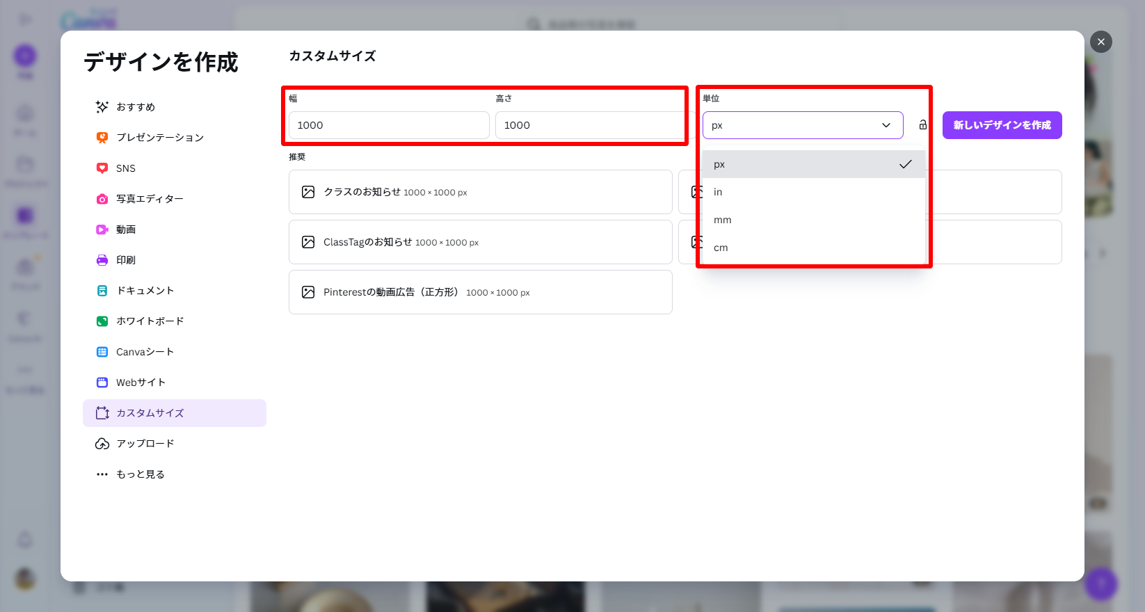 Canvaは直感的に使えるデザインツールですが、ピクセル(px)を指定して画像サイズを作成・編集できるのが大きな特長です。