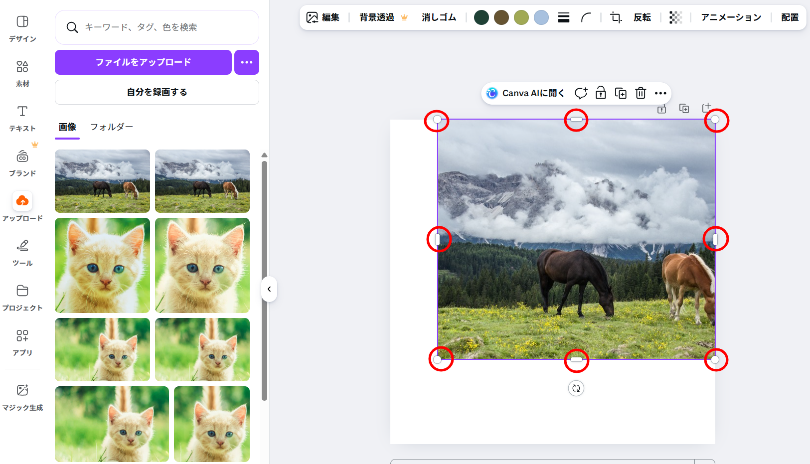 アップロードした画像を、キャンバスサイズに合わせて調整します。