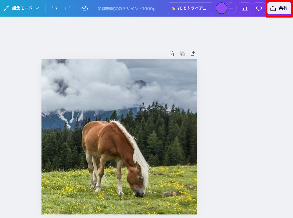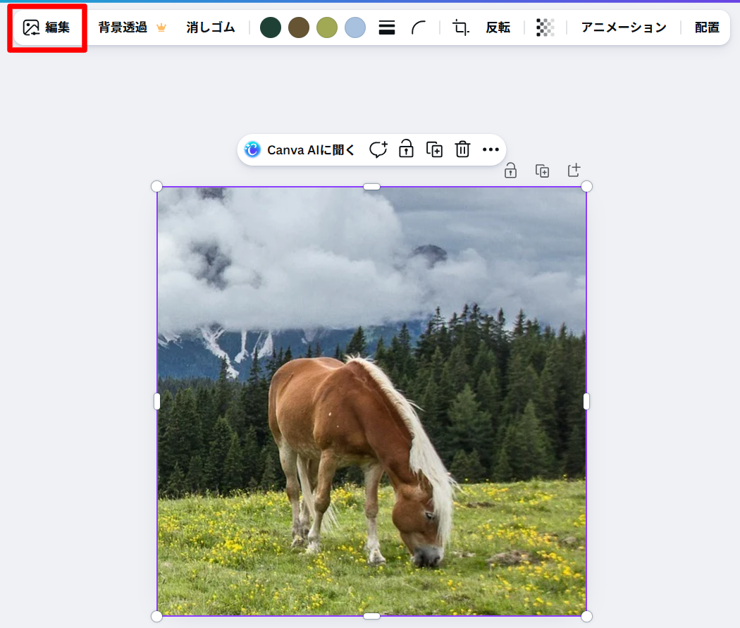 1.画像をクリックし、上部メニューの 「編集」 をクリックします。