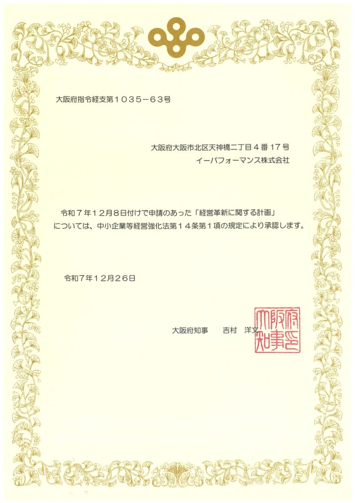 この度、当社の、AIによる低コスト&手間いらずのwebマーケティングツール「eAssist AI」が大阪府から経営革新計画の承認を受けました。